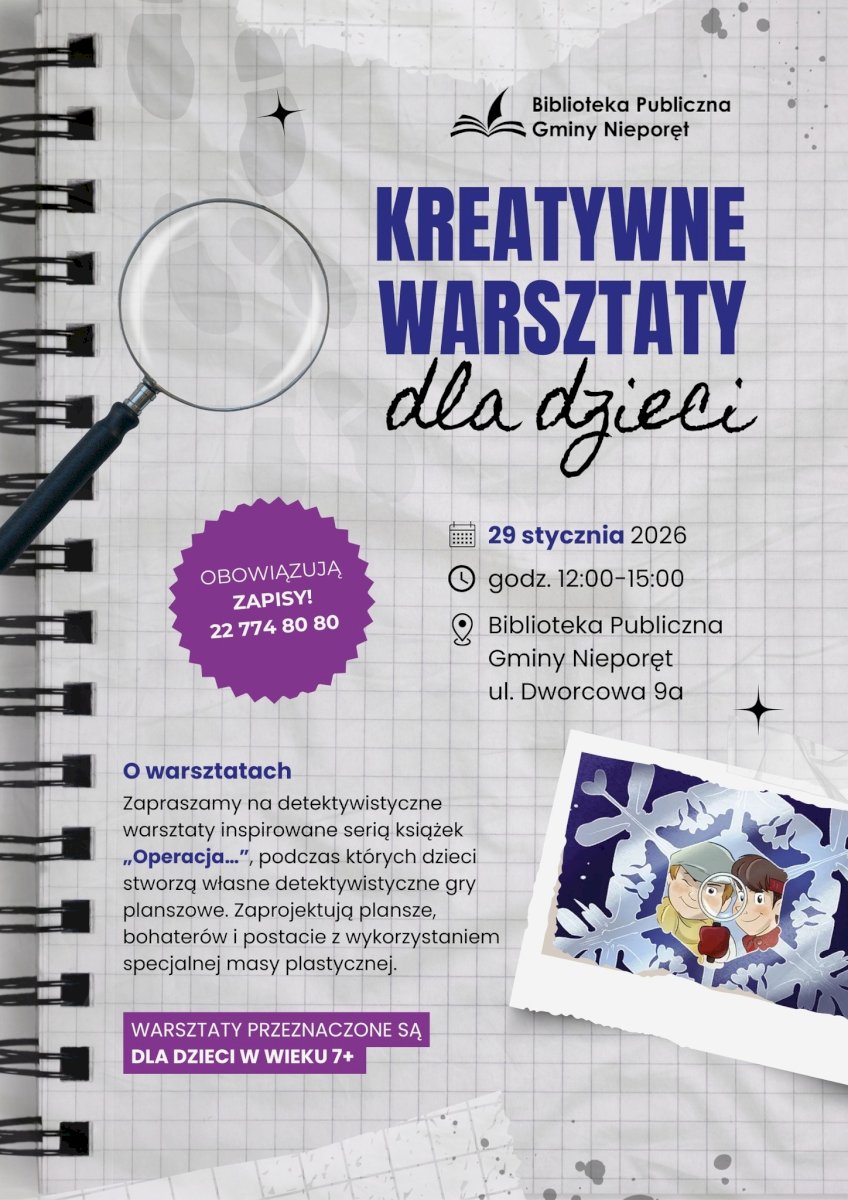 Biblioteka Publiczna Gminy Nieporęt zaprasza dzieci na twórcze warsztaty inspirowane popularną serią książek „Operacja…”.