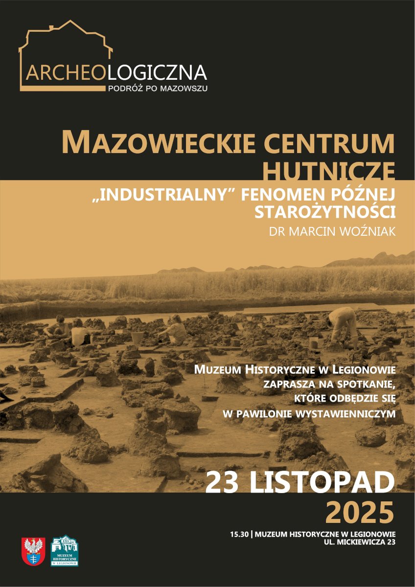 Muzeum Historyczne w Legionowie zaprasza na spotkanie z dr. Marcinem Woźniakiem pt. „Mazowieckie centrum hutnicze. „Industrialny” fenomen później starożytności”, które 23 listopada 2025 r. (niedziela) odbędzie się w pawilonie wystawienniczym (ul. A. Mickiewicza 23).